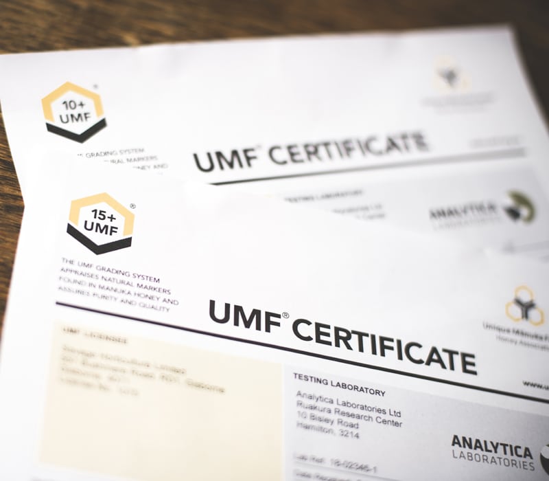 The UMF™ grading system appraises natural markers found in Manuka Honey, and assures purity and quality. Unlike other grading systems which measure just one or two markers, only the UMF™ testing process measures all three unique signature compounds, Leptosperin, Dihydroxyacetone (DHA) and Methylglyoxal (MGO) present in high quality, authentic Manuka honey.